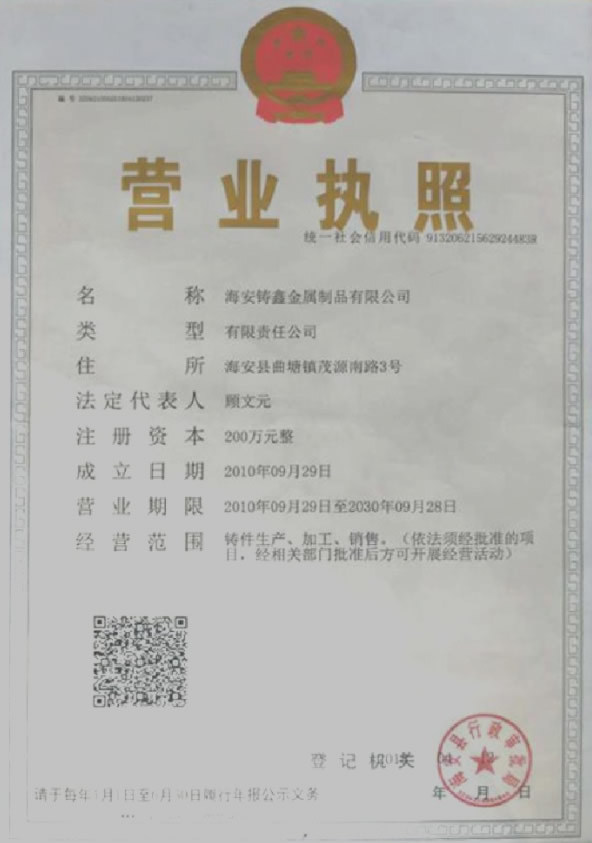 安铔R金属制品有限公司成立?010q?月,注册资金500万元Q位于江苏v安市曲塘镇双新\3P占地面积20000qxcI建筑面积5500qxc뀂公怸要生产各cȝPQT400、QT450、QT500、QT600、QT700、QT800、ADIQT1200、ADIQT1400Q球铁铸Ӟ同时生高牌L铁及特种耐热耐蚀耐磨怚g。铸件年生能力5000吨?br /> 公司拥有l验丰富的管理团队和培训合格的职工队伍,拥有多年从事铔R技术专业铸造工E师Q可为客h供新品开发支持及质量持箋改进措施......